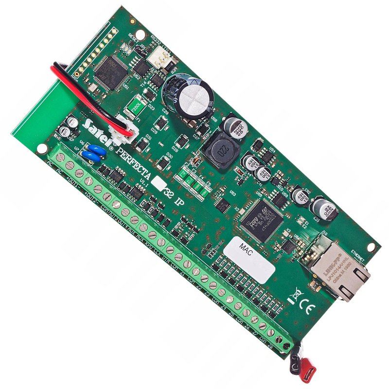 Centrala alarmowa SATEL PERFECTA-IP 32 płyta główna, 2 strefy, 32 wejścia alarmowe, 8 na płycie gł.pozostałe przez zewn.ekspandery INT-E, 12 wyjść, 4 na płycie gł. pozostałe przez zewn.ekspandery INT-O, Złącze ethernet RJ45 do połączenia z internetem