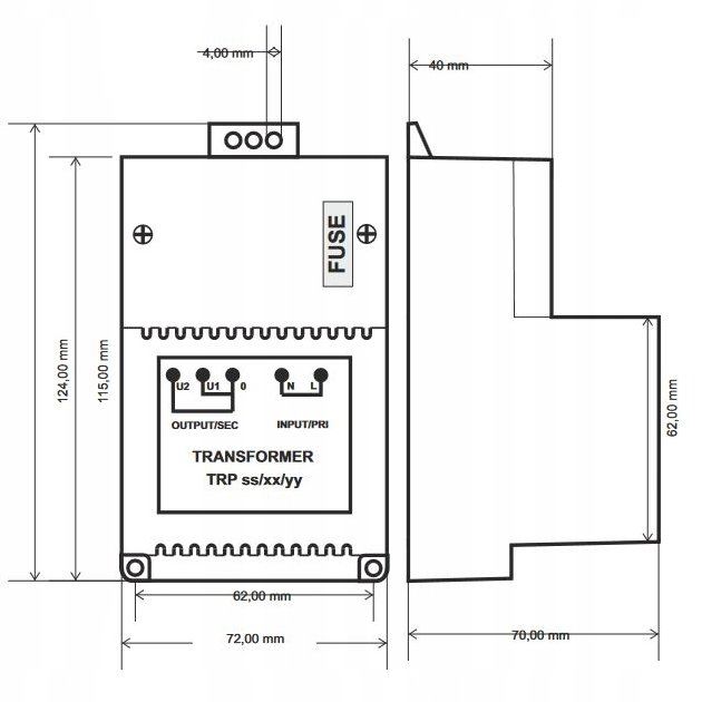 Transformator doskonale pasuje do obudowy SATEL OPU-3 P oraz OPU-4 P.
