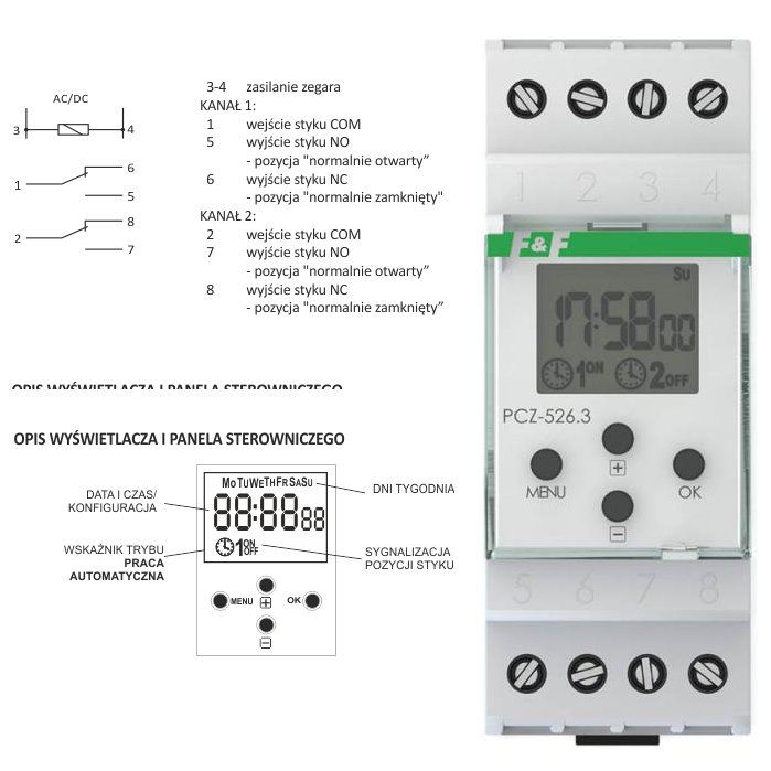 Funkcje dwukanałowego zegara astronomicznego PCZ-526