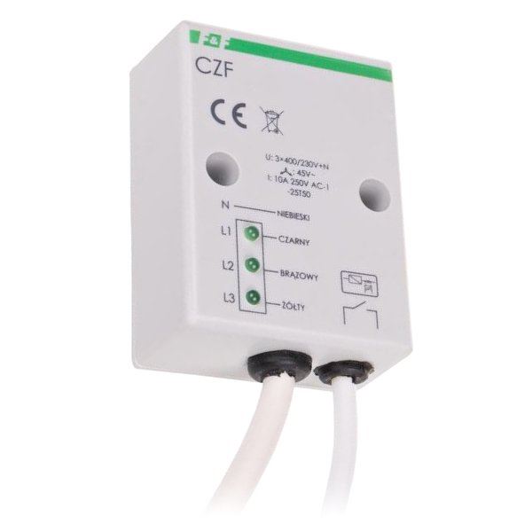 Przekaźnik zaniku i asymetrii fazy CZF 10A 1Z opóźnienie 4sek 45V
