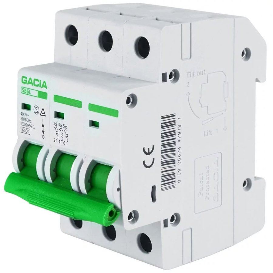 Wyłącznik nadmiarowoprądowy 3-fazowy SB6L GACIA 3P 6kA,Prąd znamionowy 16A, Charakterystyka typu B