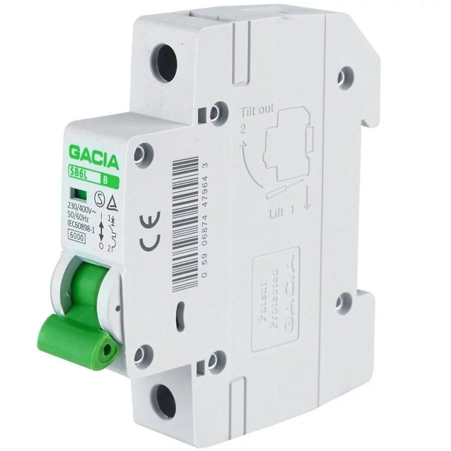 Wyłącznik nadmiarowoprądowy 1-fazowy SB6L GACIA 1P 6kA,Prąd znamionowy 25A, Charakterystyka typu B