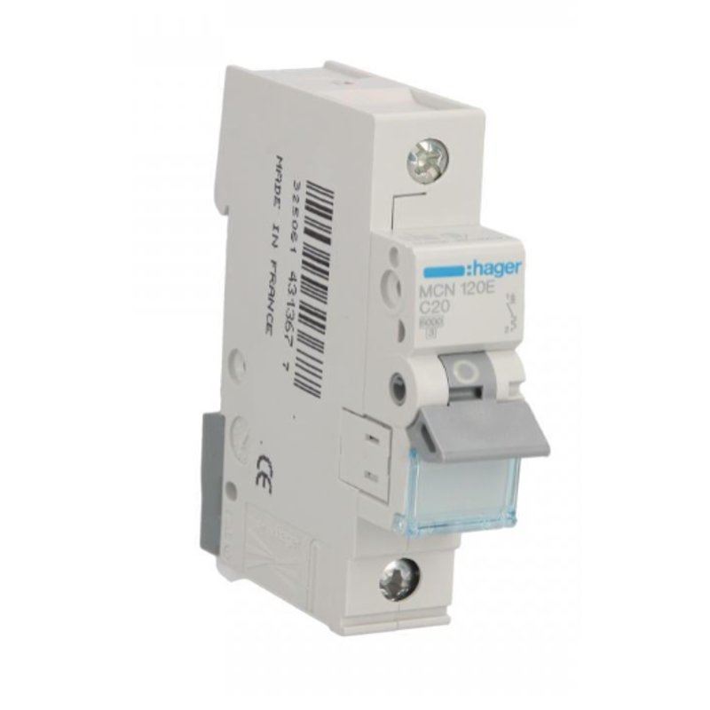 Wyłącznik nadprądowy Hager C20A 1P 6kA AC bezpiecznik automatyczny zwłoczny typu C