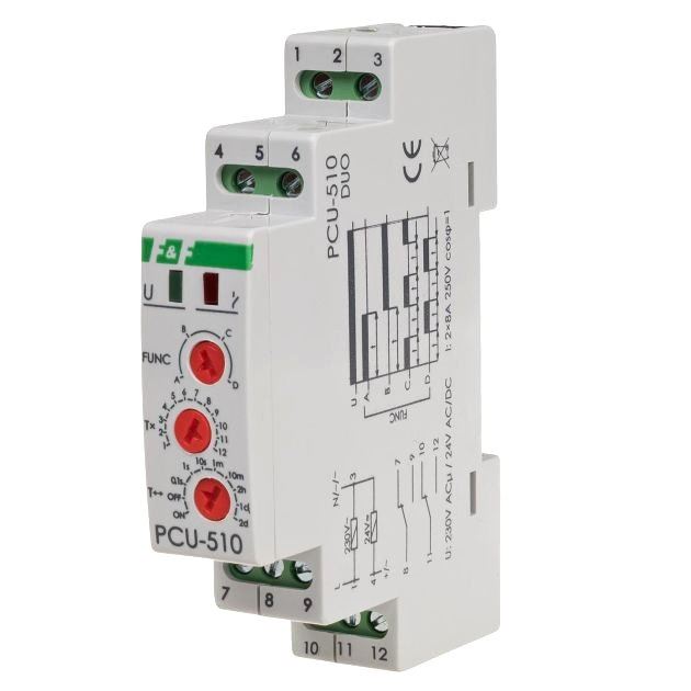 Przekaźnik czasowy PCU-510DUO 2P 8A 230V AC, 24V