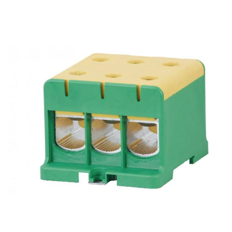 Listwa zaciskowa skręcana na szynę TH35 3x150/3x150mm2 żółt/ziel w korpusie (ZU 1-torowa)