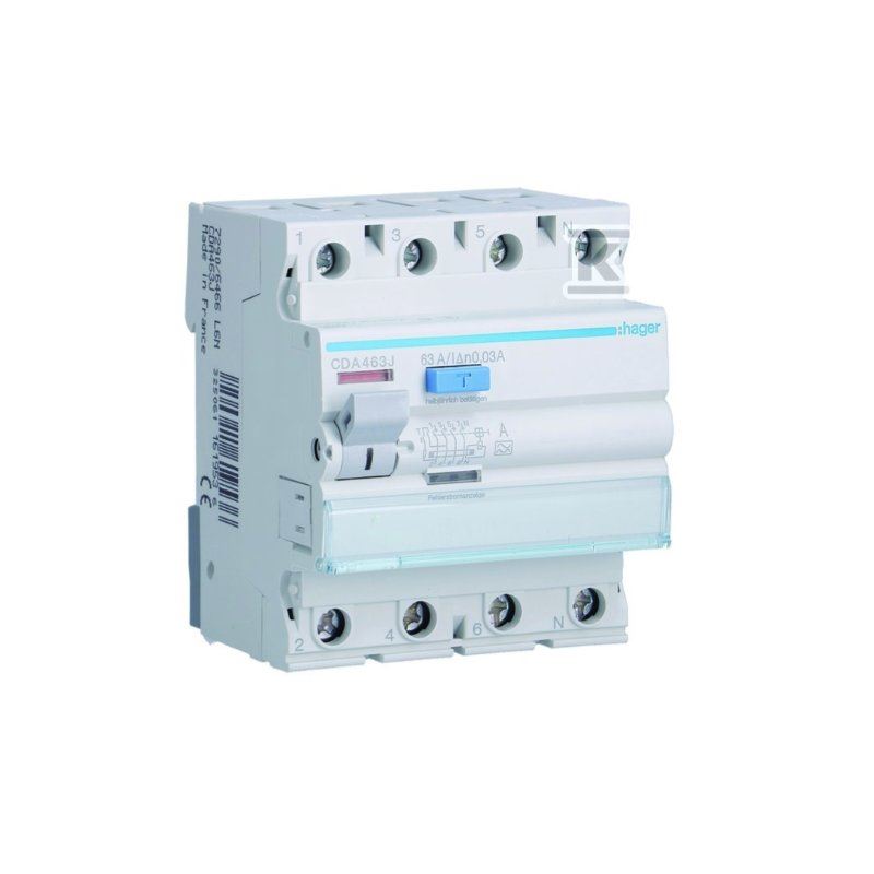 Wyłącznik różnicowoprądowy CDC463J 63A/30mA 4P AC HagerHDD761