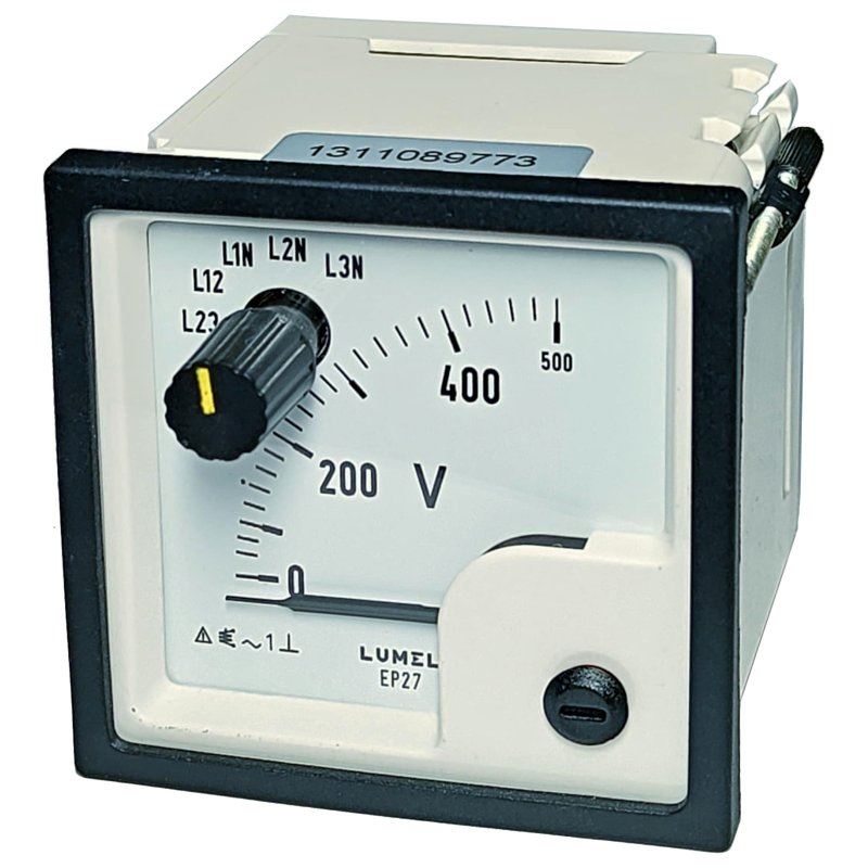 Woltomierz z przełącznikiem EP27 NE615 500V poz.pracy C3 K=90st bez atestu K J, miernik analogowy, wskazówkowy napięcia fazowego i międzyfazowego 3 fazowy, przełączane wejścia pomiarowe
