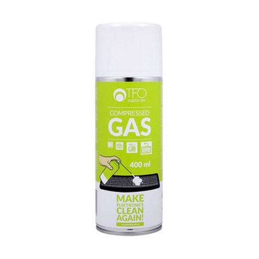 Sprężony gaz - 400 ml. Idealne do czyszczenia, usuwania kurzu ze sprzętu elektrycznego, klawiatur, laptopów, wnętrza obudowy komputerowej. Specjalny aplikator umożliwia dotarcie do trudno dostępnych miejsc. Nie pozostawia żadnych śladów. Bezzapachowy.