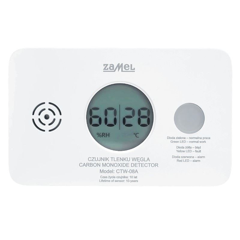 Czujnik CTW-08A służy do ciągłego monitorowania niebezpiecznego stężenia tlenku węgla w powietrzu. W momencie detekcji niebezpieczeństwa urządzenie załącza alarm dźwiękowy i optyczny. Dzięki zasilaniu bateryjnemu czujnik łatwo umieścić we właściwym miejscu (nie musi być gniazdka w pobliżu). Detektor posiada zaawansowany czujnik elektrochemiczny (żywotność sensora – 10 lat) oraz układ autodiagnostyczny, który sygnalizuje uszkodzenie czujnika, koniec jego żywotności oraz rozładowującą się baterię. CTW-08 dodatkowo posiada wyświetlacz LCD, który pokazuje stężenie tlenku węgla, komunikaty informacyjne oraz dodatkowo temperaturę i wilgotność powietrza.