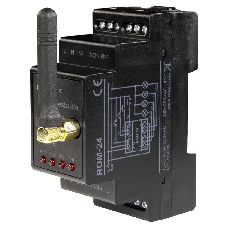 Odbiornik radiowy ROM-24 ExtaLife Zamel DIN TH35, 4 kanały, modułowy, zdalne sterowanie oświetleniem itp.