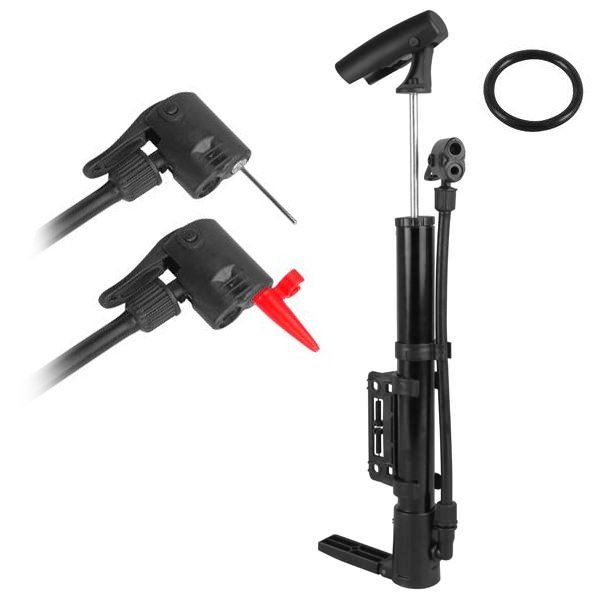 Metalowa, nożna pompka rowerowa z dodatkowymi, wymiennymi końcówkami w zestawie! Doskonale nadaje się również do pompowania materacy, piłek czy pontonów. Końcówka węża wyposażona została w specjalny klips umożliwiający pewne zapięcie pompki na wentylu. Produkt fabrycznie nowy, wysokiej jakości. Solidna metalowa konstrukcja zapewni długie i bezproblemowe użytkowanie. Wymienne końcówki dostosowane do różnych wentyli! Specjalny klips umożliwiający wygodne podpięcie pompki do wentylu.Dodatkowy uchwyt montażowy do ramy roweru umożliwia zabranie pompki w podróż.
