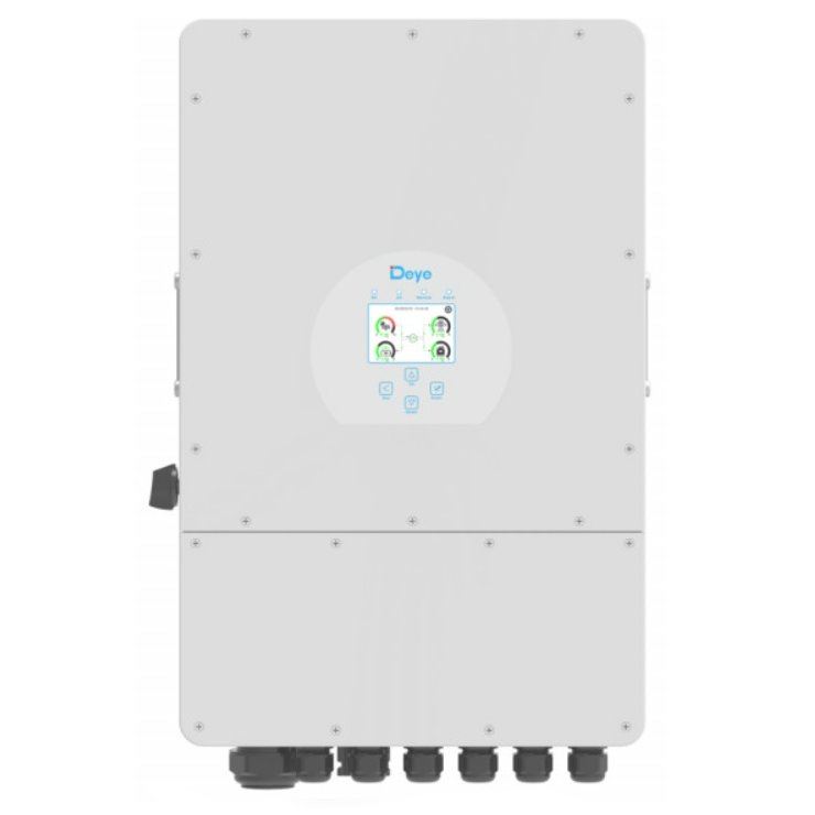 Inwerter DEYE hybrydowy 3-fazowy, wbudowana komunikacja RS485, ograniczniki przepięć DC typ II AC typ III, rozłącznik DC, 8kW/8,8kVA, 100% mocy niezbalansowane, ilość MPPT: 2, interfejs akumulatora 48V