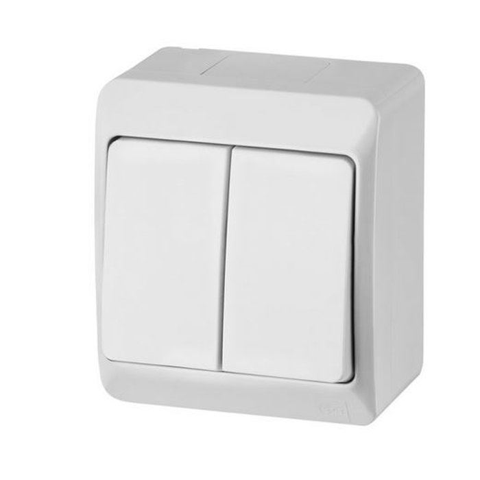 Łącznik HERMES świecznikowy hermetyczny 10A IP44 biały wyłącznik ścienny natynkowy podwójny