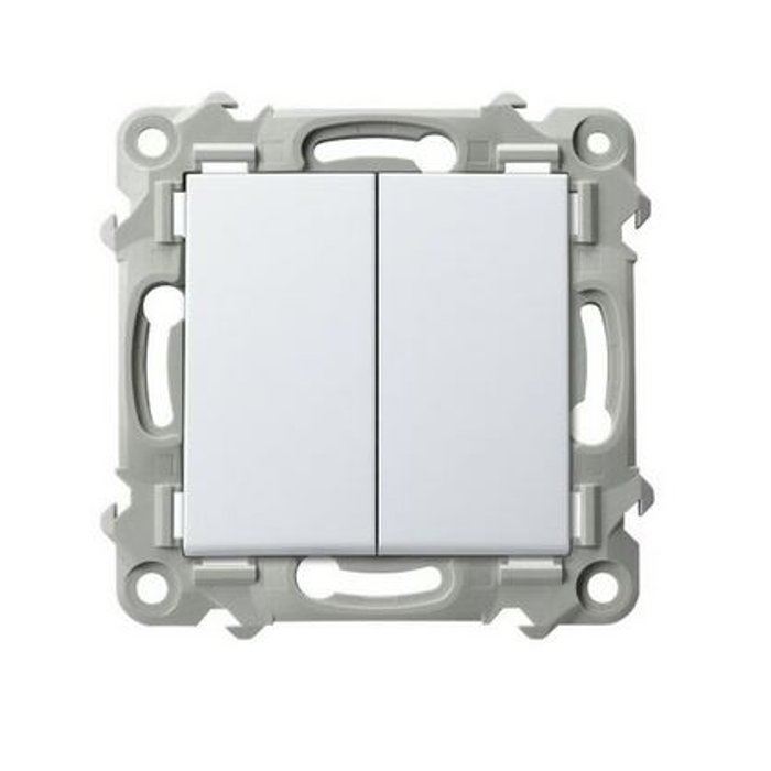 Standardowy wyłącznik pojedynczy wyposażony w jeden klawisz umożliwiający załączanie i wyłączanie w obrębie jednego obwodu. Stosowany w pomieszczeniach jako przełącznik oświetlenia. Do kompletu wymagana ramka. Można stosować do systemów ramkowych wielokrotnych.