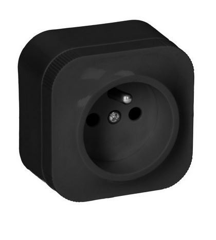 Gniazdo pojedyncze z uziemieniem TODO w kolorze czarnym. Stopień IP20.