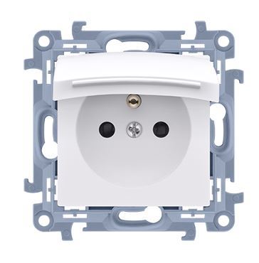Simon54 Gniazdo pojedyncze z/u IP44 białe DGZ1BZ.10/11 z przesłoną torów z klapką