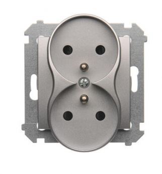 Simon 54 Gniazdo podwójne z/u 16A IP20 z przesłoną torów srebrny mat