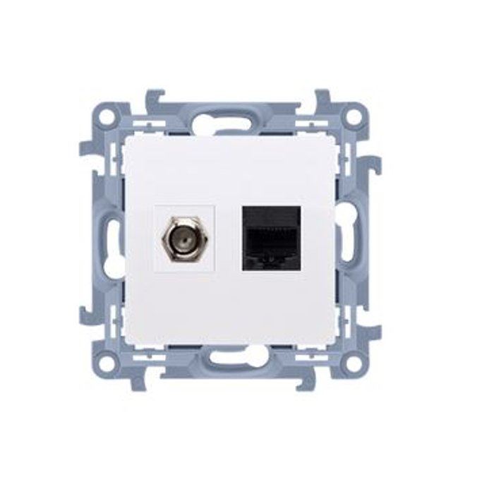 Simon 10 Gniazdo antenowe + komputerow typu F + RJ45 kat.5e białe