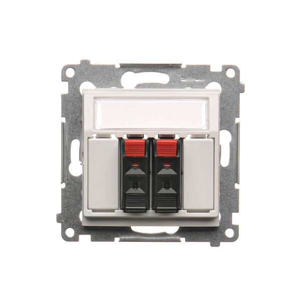 DGL34.01/11 Gniazdo głośnikowe 2-krotne z polem opisowym, białe, podwójne / 2x sprężynowe na 2 głośniki