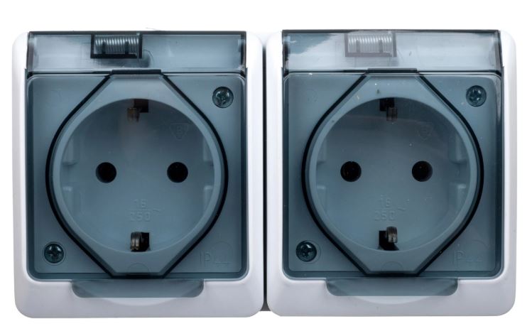 Gniazdo 0325-01 herm. Schuko16A IP44 natynkowe z/u z klapką dymną białe