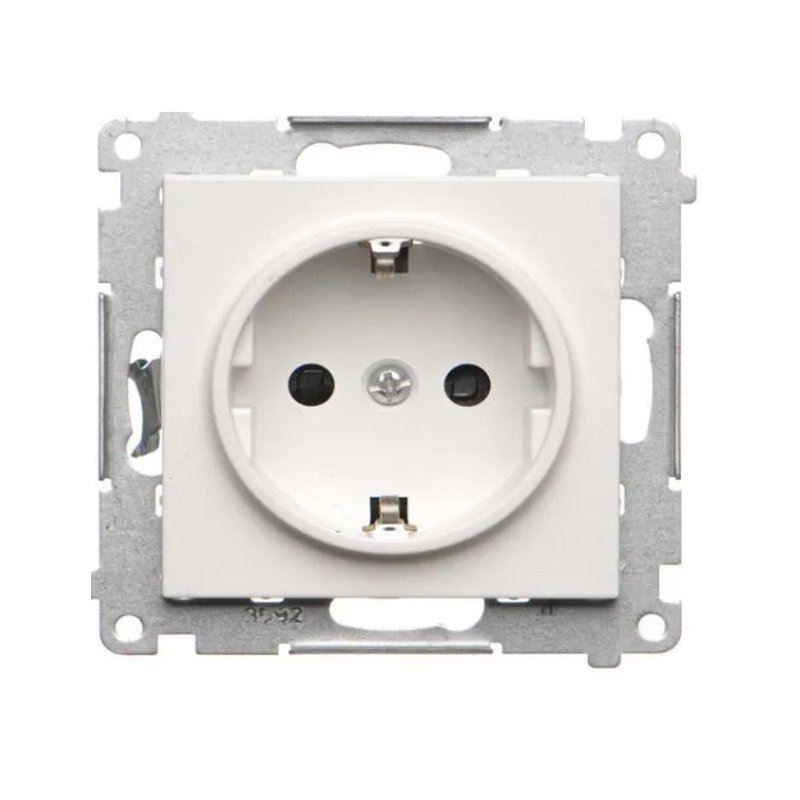 Simon55 Gn. Schuko z przesłonami(moduł) biały mat