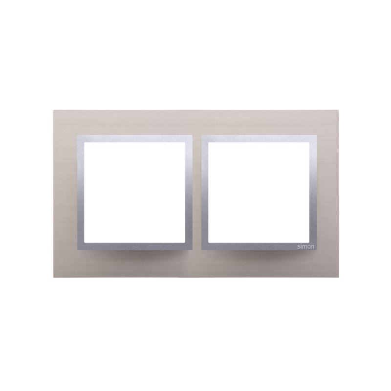 Ramka 2-krotna uniwersalna do serii Simon 54 Nature. Wykonana z metalu. Wewnętrzny pierścień ramki wykonany z tworzywa w kolorze srebrnym.
