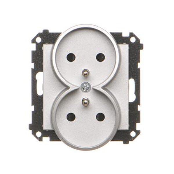 Simon55 Gniazdo wtyczkowe podwójne z uziemieniem z przesłonami (moduł) 16A, 250V szybkozłącza kolor Aluminium mat TGZ2MCZ.01/143