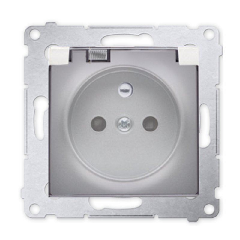 Simon54 Gniazdo pojedyncze z/u IP44 srebrny mat z klapką transparentną bez uszczelki bryzgoszczelne