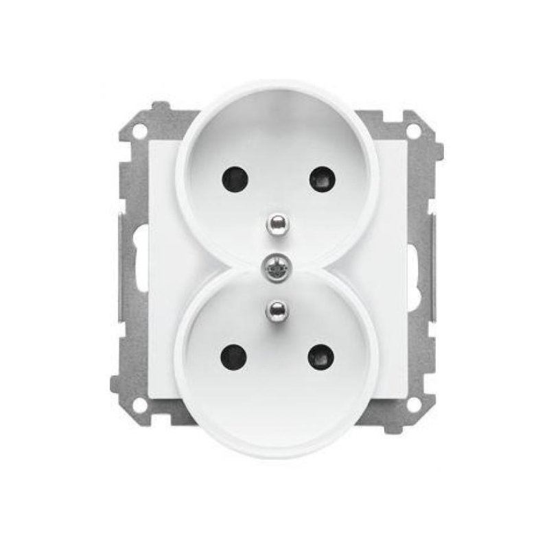 Simon55 Gniazdo wtyczkowe podwójne z uziemieniem z przesłonami (moduł) 16A, 250V szybkozłącza Jasnoszary mat TGZ2MCZ.01/114