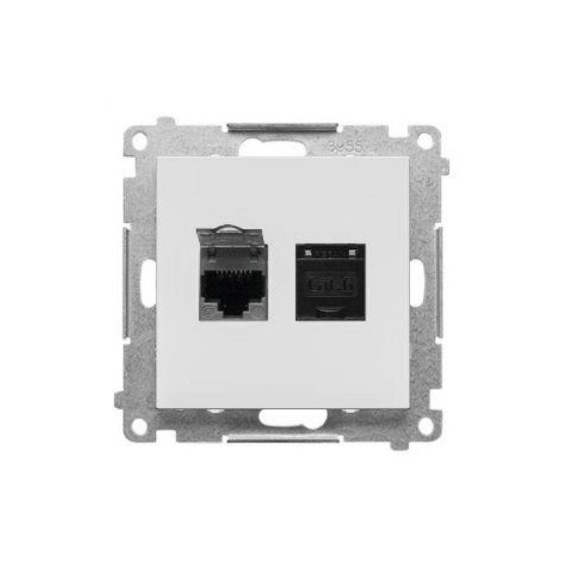 Simon55 gniazdo komputerowe podwójne RJ45 kategoria 6, z przesłoną przeciwkurzową Jasnoszary mat T62.01/114