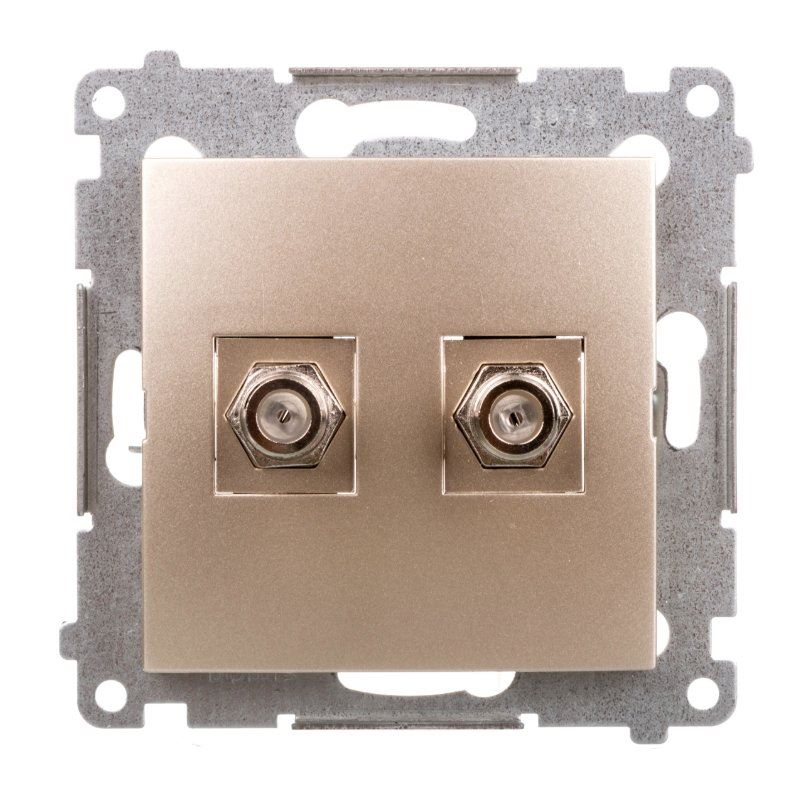 Simon54 Gniazdo antenowe podwójne typu F złoty mat DASF2.01/44