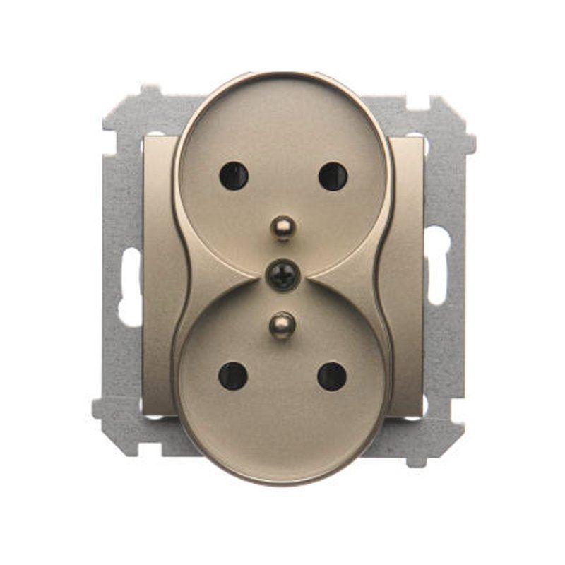 Simon54 Gniazdo podwójne z/u złoty mat, 16A IP20 z przesłoną torów DGZ2MZ.01/44