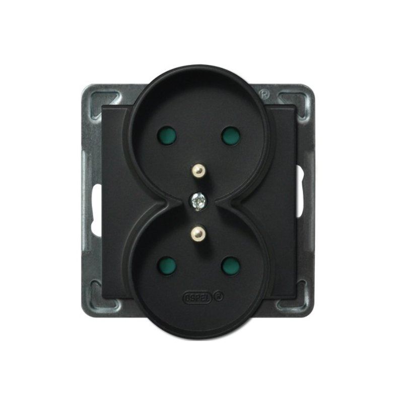 SONATA Gniazdo podwójne z/u czarny metalik IP20 OSPEL
