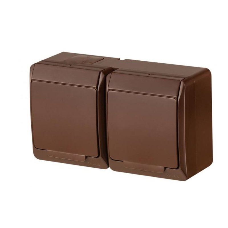 Gniazdo Hermes GNT 0322-06 podwójne herm. 16A IP44 natynkowe z uziemieniem z klapką brązowe