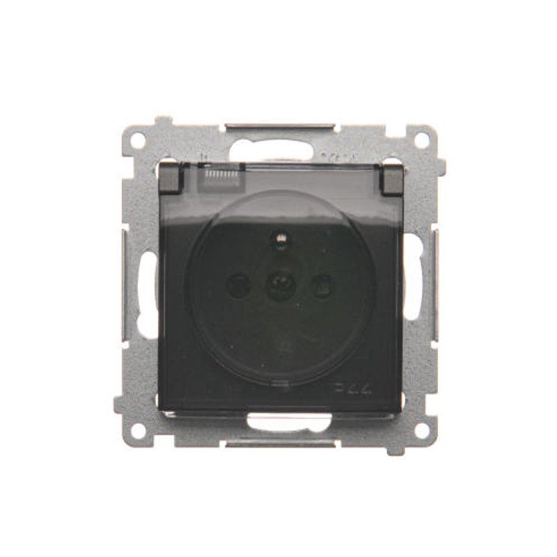 Simon 54 Gniazdo bryzgoszczelne z/u IP44 z klapką transparentną bez uszczelki antracyt DGZ1BUZ.01/48A