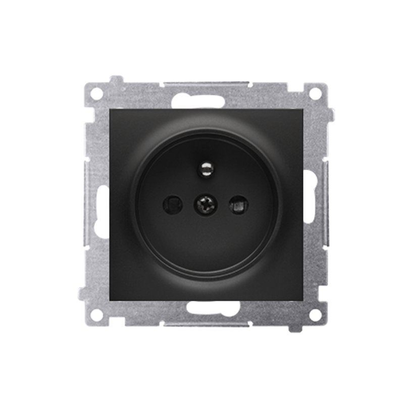 Simon54 Gniazdo pojedncze z/u czarny mat z przesłonami styków szybkozłącza
