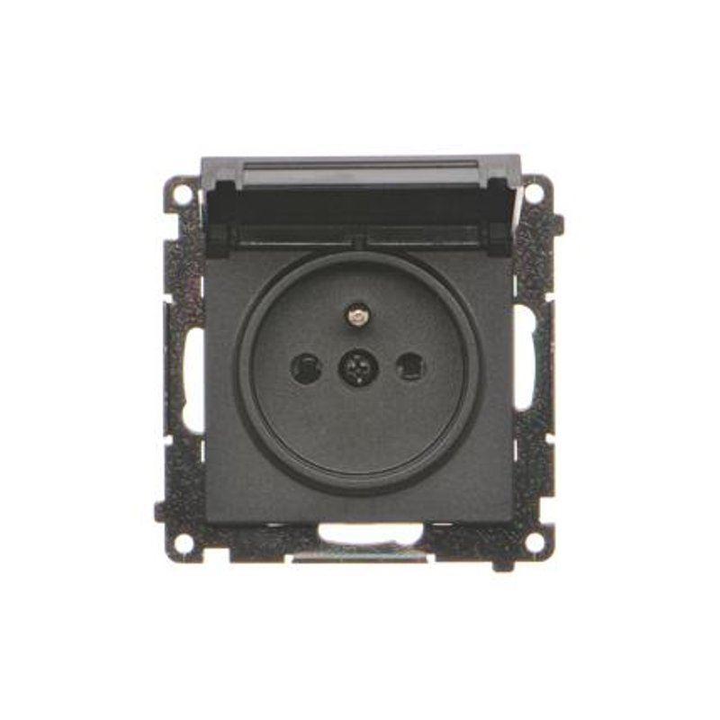 Simon 55 Gniazdo do wersji IP44 bez uszczelki (moduł), szybkozłącza. Klapka w kolorze pokrywy Czarny mat