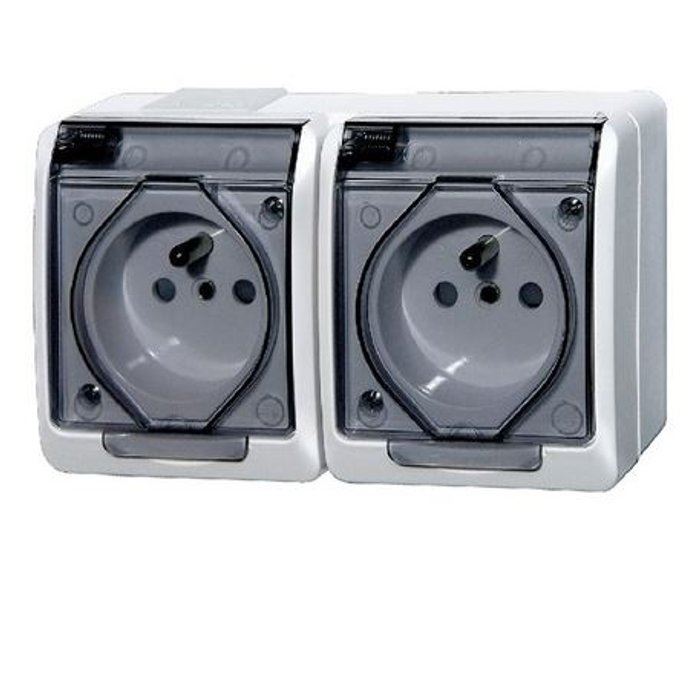 Gniazdo Hermes GNT 0322-01 podwójne herm. 16A IP44 natynkowe z uziemieniem z klapką dymną białe