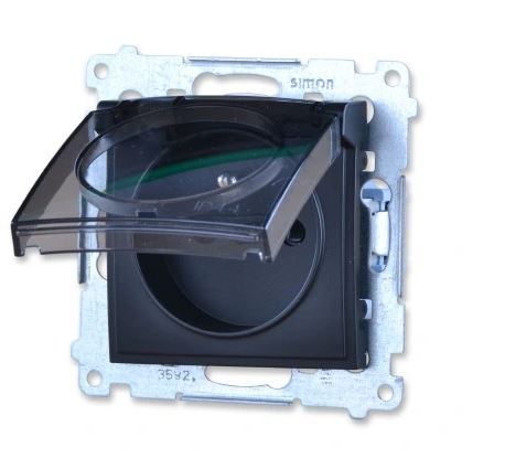 Simon54 Gniazdo pojedyncze z/u IP44 czarny mat tra
