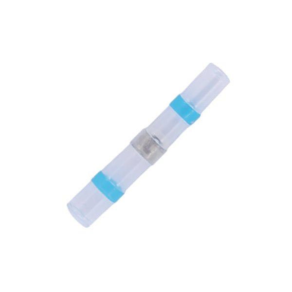 Mufa, łącznik termokurczliwy z cyną ZIT2,5 1,5-2,5mm niebieski tulejka ERGOM, do szybkiego łączenia przewodów, po podgrzaniu roztopiona cyna zapewnia przewodność, a klej szczelność, napięcie przebicia 600V