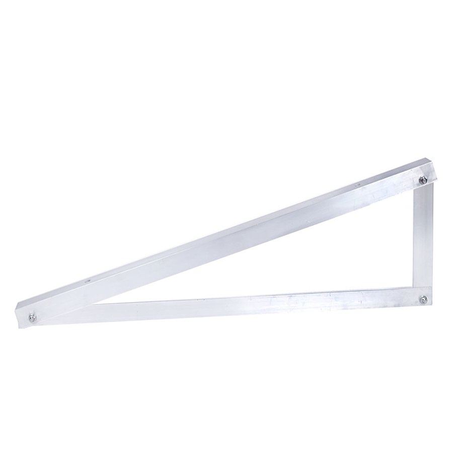 Trójkąt montażowy złożony z kątowników aluminiowych o wymiarach 40x40x3 mm do montażu paneli fotowoltaicznych w układzie poziomym na dachu płaskim lub o małym spadzie. Długości elem.: 97+92+30cm