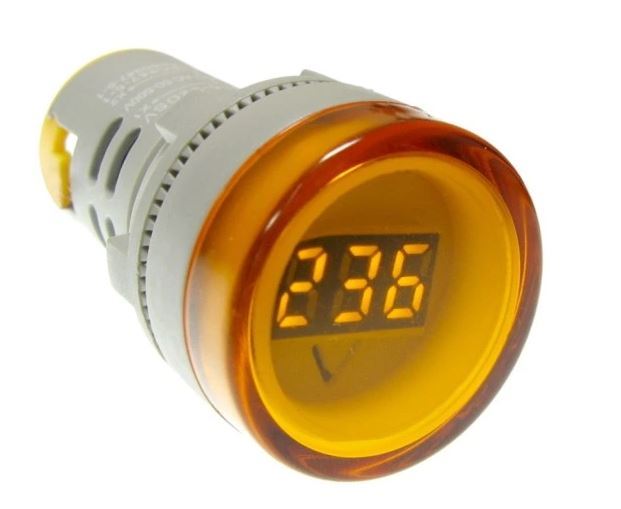Kontrolka LED 220V / 230V AC żółta 22mm z miernikiem napięcia - woltomierz