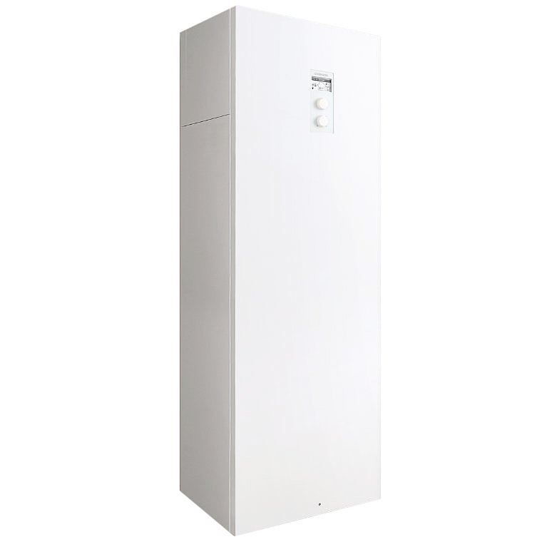- Cała kotłownia zintegrowana w jednej obudowie zawiera kocioł c.o. ze