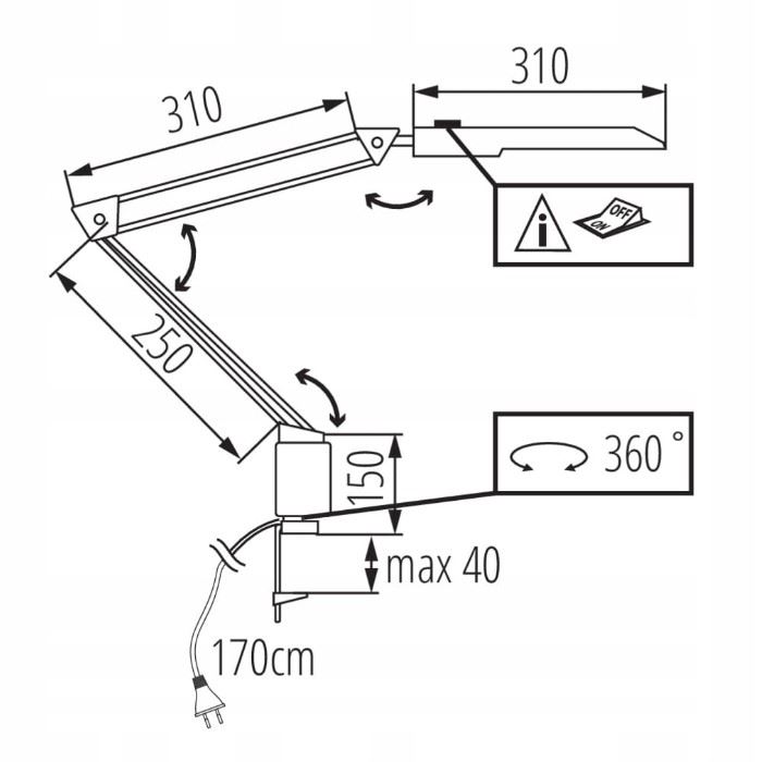 HERON II LED posiada wyłącznik umieszczony na kloszu oraz zacisk, który pozwala przytwierdzić podstawę do krawędzi blatu lub półki. Kanlux HERON II LED cieszy się zainteresowaniem osób, które cenią sobie nowoczesny, surowy design.