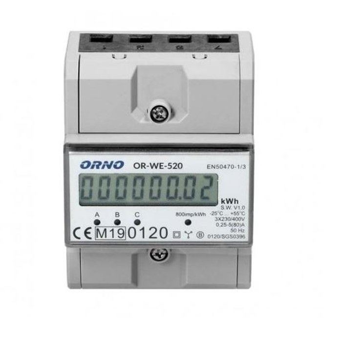 Licznik energii elektrycznej WE-520 3-faz 80A MID na szyn DIN TH35 LCD max 35mm2 wyjście impulsow, podświetlenie, 3MOD