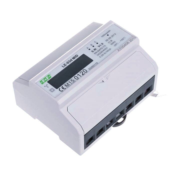 Licznik energii elektrycznej LE-03d F&F, Licznik trójfazowy. Prąd 100A, Zgodny z dyrektywą MID, jest to wzorcowany licznik zużycia energii elektrycznej prądu przemiennego w układzie bezpośrednim.MID 2004/22/ECEN 50470-1/3