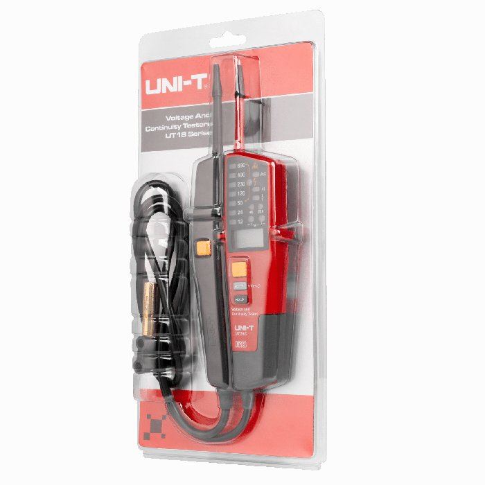 Miernik tester uniwersalny cyfrowy z LCD UT18C UNITWskaźnik LED:12,24,50,120,230,400,690VTest kolejności faz, Detekcja napięcia fazy: 100-690VTest ciągłości: 0-100kOhm, Test RCD: 230V, Detekcja polaryzacji