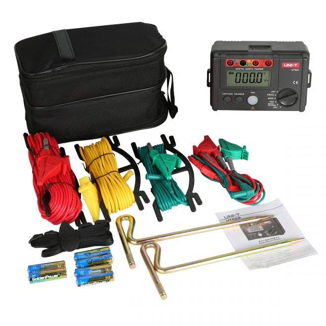Miernik rezystancji uziemienia UT522 UNITRezystancja uziemienia: 40 Ohm / 400 Ohm / 4000 Ohm ±(2%+30)Napięcie prądu błądzącego: 0 ~ 400 V ±(1%+6); 50/60 Hz