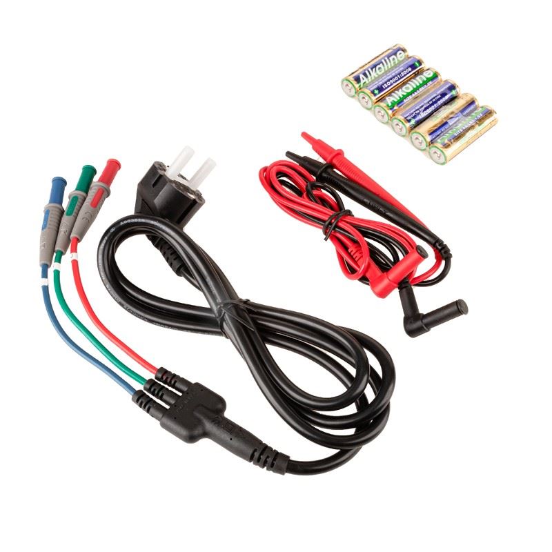 Akcesoria: bateria, 2 zestawy przewodów pomiarowych, pasek, etui