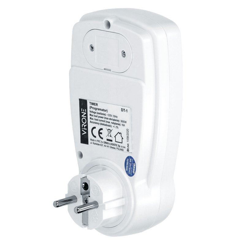Wtyczkowy elektroniczny programator czasowy / timer z wyświetlaczem LCD DT-1 wpinany do gniazdka elektrycznego 230V AC